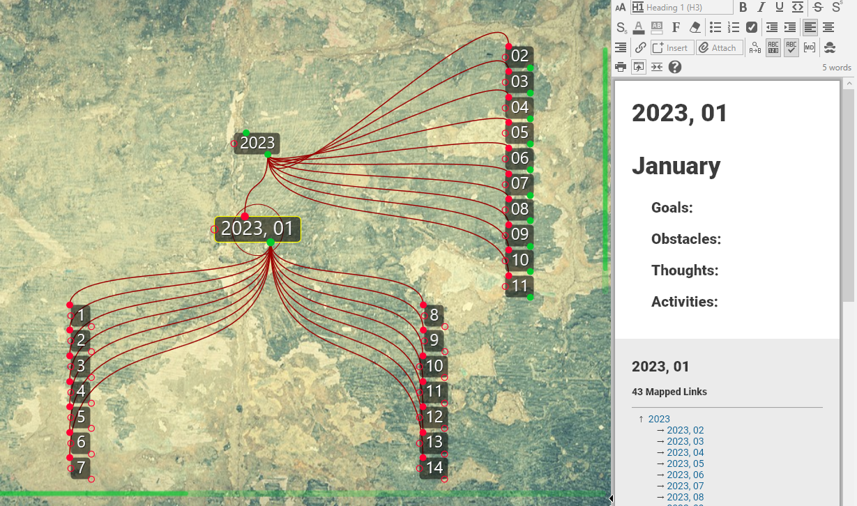 Whether you keep it as a standalone brain for daily journalling or merge it into your existing brain, this template will give you a new thought for every day of the year. Add your own thoughts, notes and activities. Link to related content, files and web pages. Your Journal has never been more powerful and meaningful!